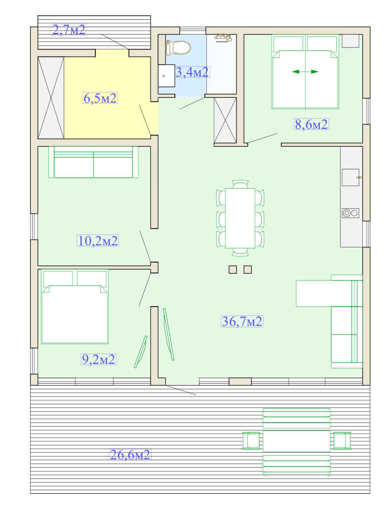 - веранда 11 м² - место для утреннего кофе или вечернего отдыха с книгой