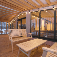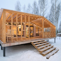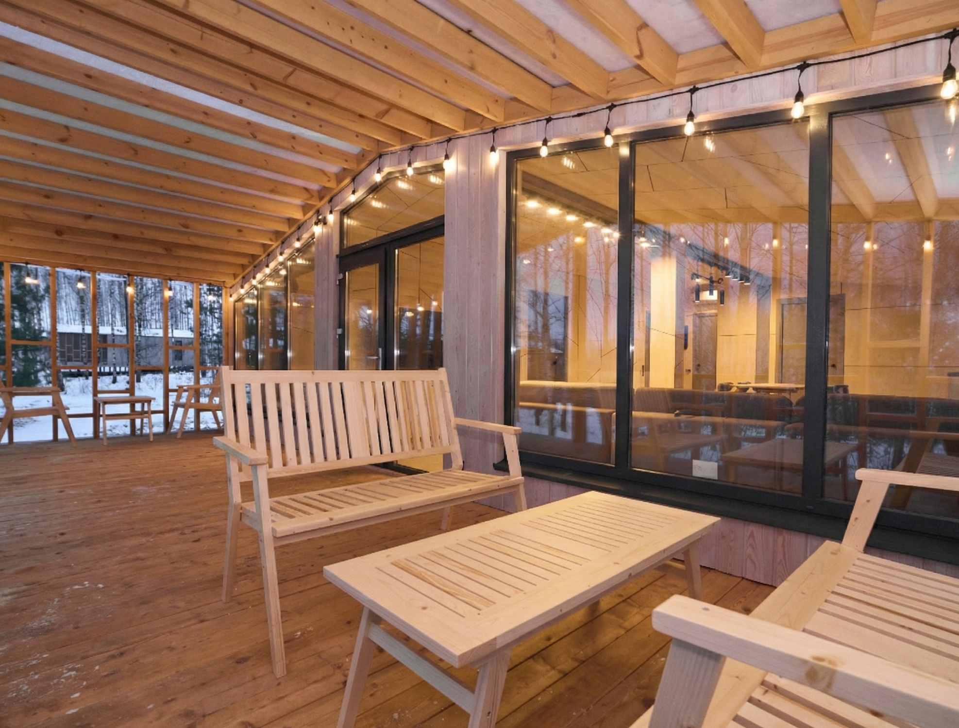 - панорамные окна в спальне и на веранде открывают вид на окружающую природу