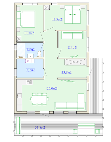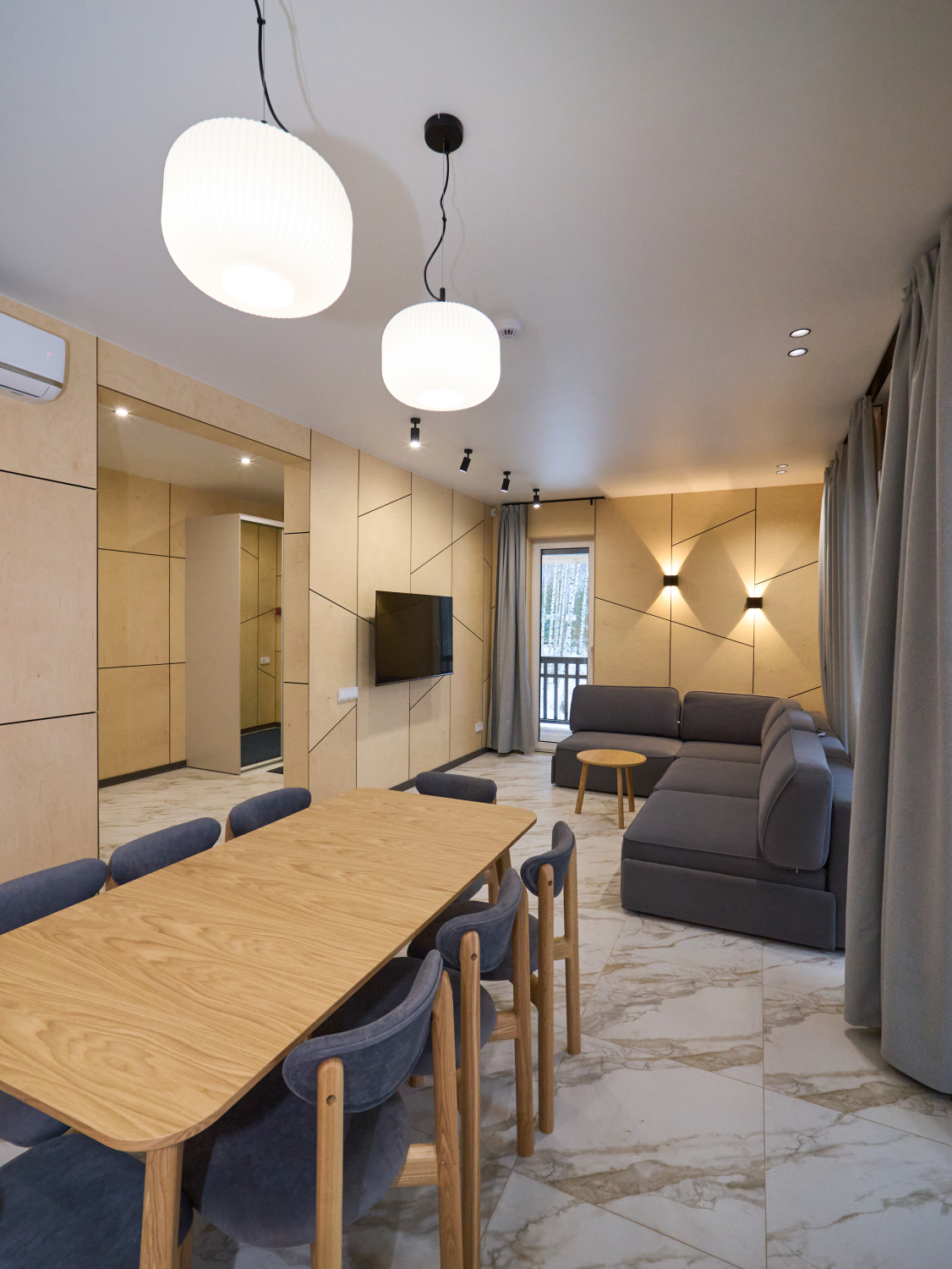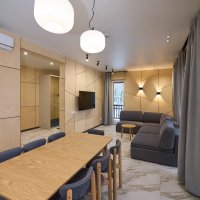 - Просторная гостиная с раскладывающимся диваном, три отдельные спальни, кухня-столовая, 2 ванных комнаты.