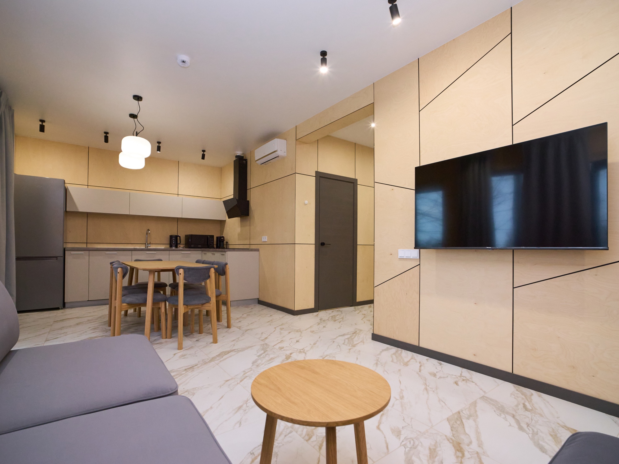 - Телевизоры: ТВ 55 дюймов в гостиной и ТВ 43 дюйма в мастер-спальне.